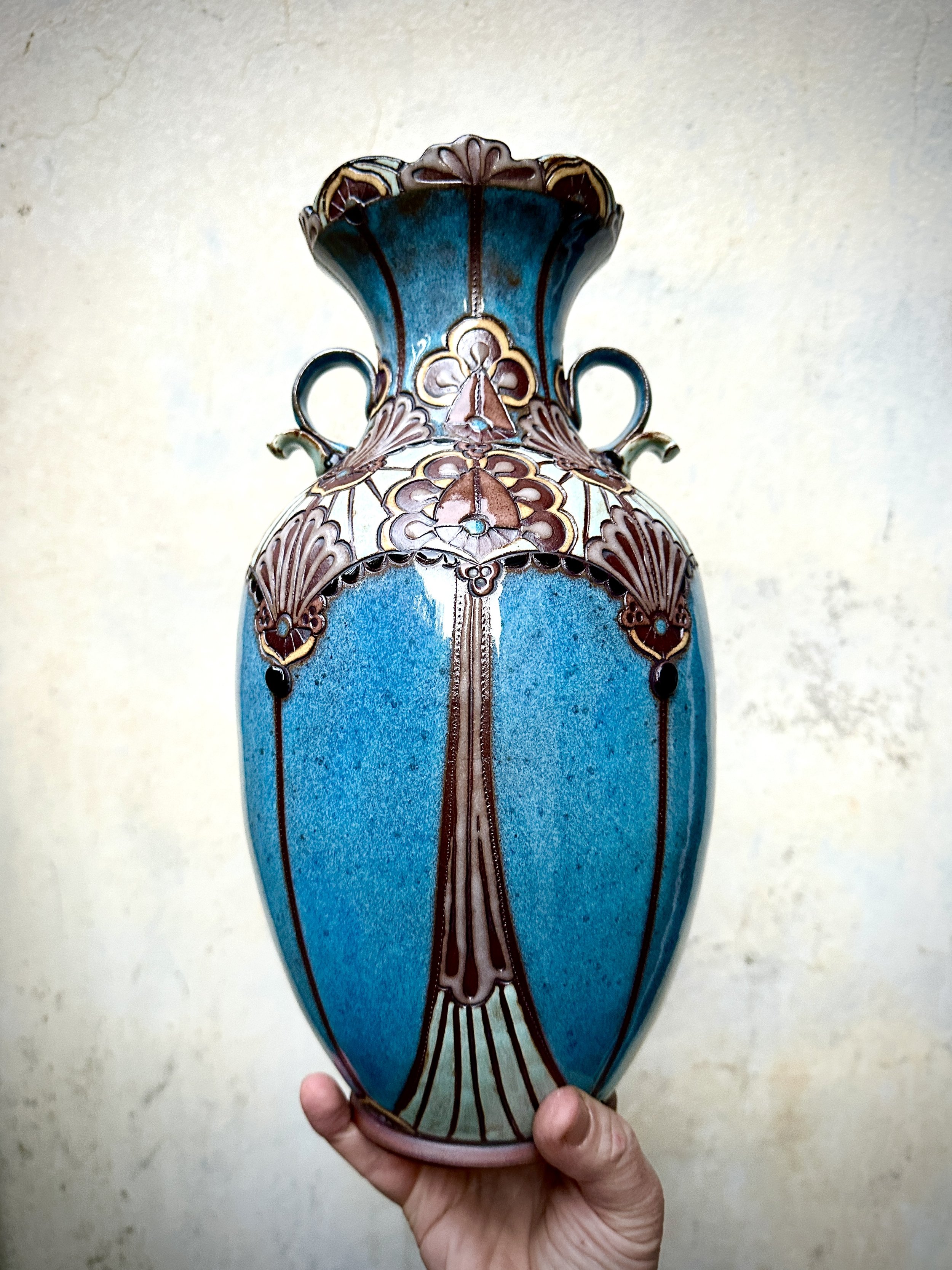 Every pattern is intuitively made, starting with stamped motifs, and building with impressions and carvings.
